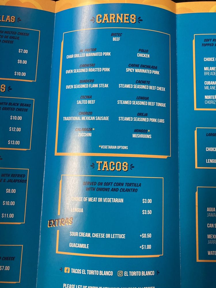 Boasting options for meat lovers and vegetarians alike, the menu includes crowd favorites like steak nachos and flavorful shrimp tostadas. Don't overlook their salsas; the green and avocado sauces enhance the richness of the dishes beautifully. Customers rave about the friendly service and generous portions, ensuring every meal feels like a celebratory feast. Whether dining in or opting for takeout, Tacos El Torito Blanco is a culinary stop you won't want to miss!